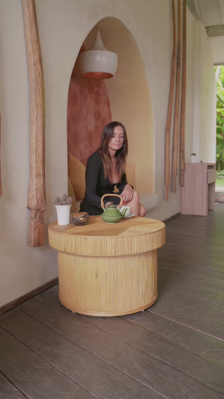 Mit seinem schlichten Design und dem geometrischen Muster aus natürlichen Elementen ist dieser Couchtisch eine großartige Lösung für alle, die sich einen minimalistischen, robusten und tropischen Couchtisch für ihr Wohnzimmer oder ihren Außenbereich wünschen. Perfekt, um den Morgenkaffee mit einer Seite von warmen Pfannkuchen mit Honig beträufelt, die den Farbton des Tisches passt zu platzieren. Der Tisch besteht aus 100% natürlichem, hochwertigem Rattan, das im Herzen von Indonesien handgefertigt wird.