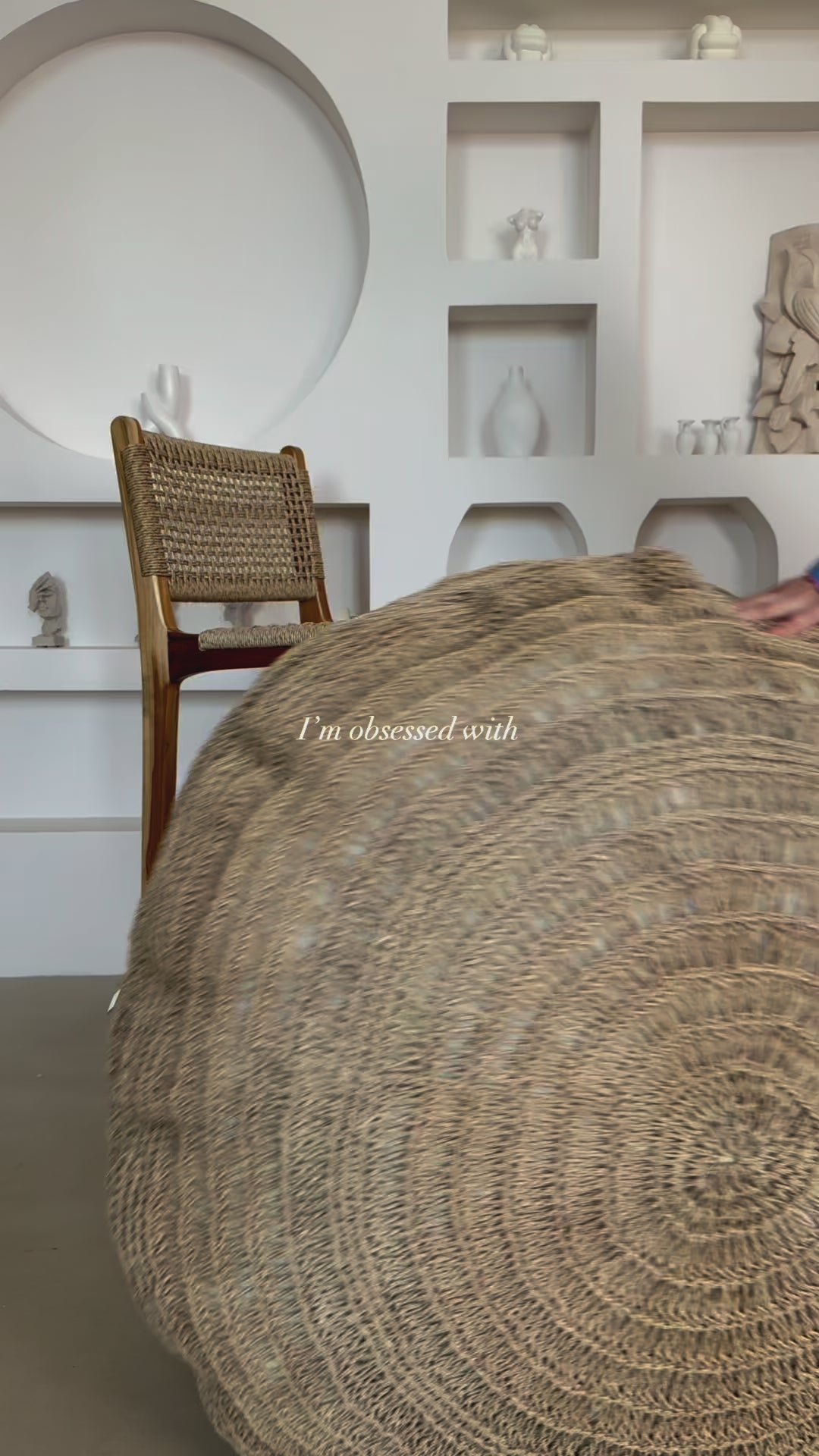 The FLO pouf was handcrafted from sea grass by Indonesian craftsmen.
