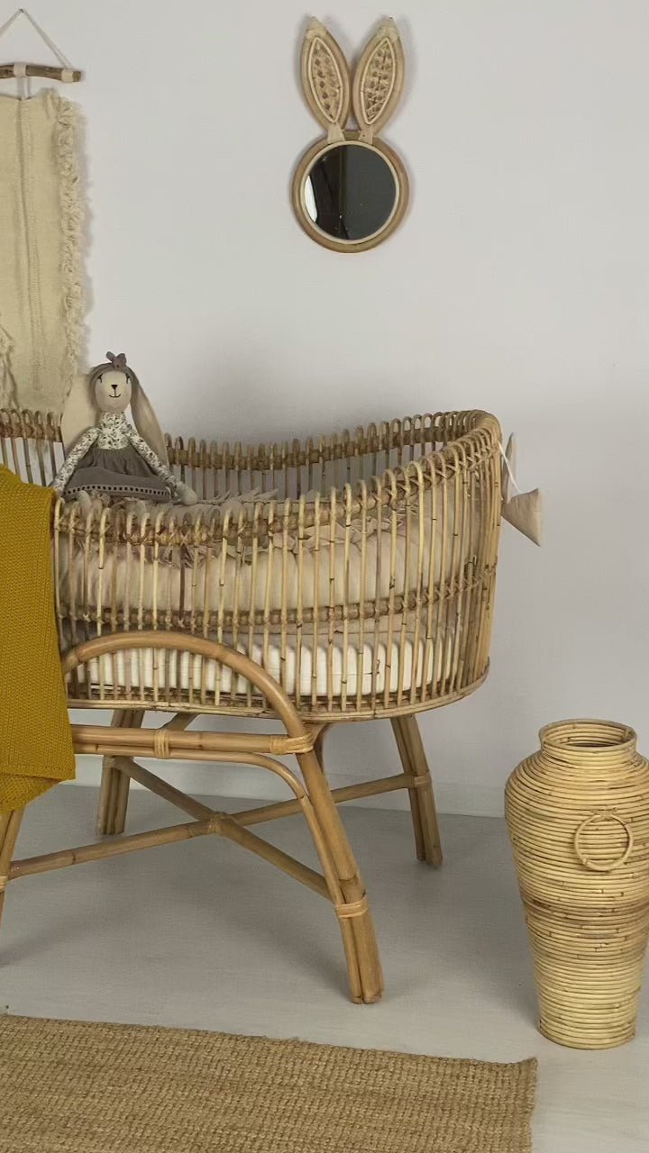In this crib, your baby sleeps safely and peacefully. Made of real rattan, a tough, durable, and renewable natural material that is excellent for both your baby and the environment. This crib is made by hand from natural rattan. The crib is very solid as well as light due to which it can wander around the house with the baby. And in the summer it can be used in the garden or on the terrace.